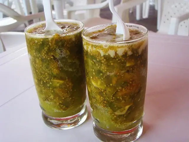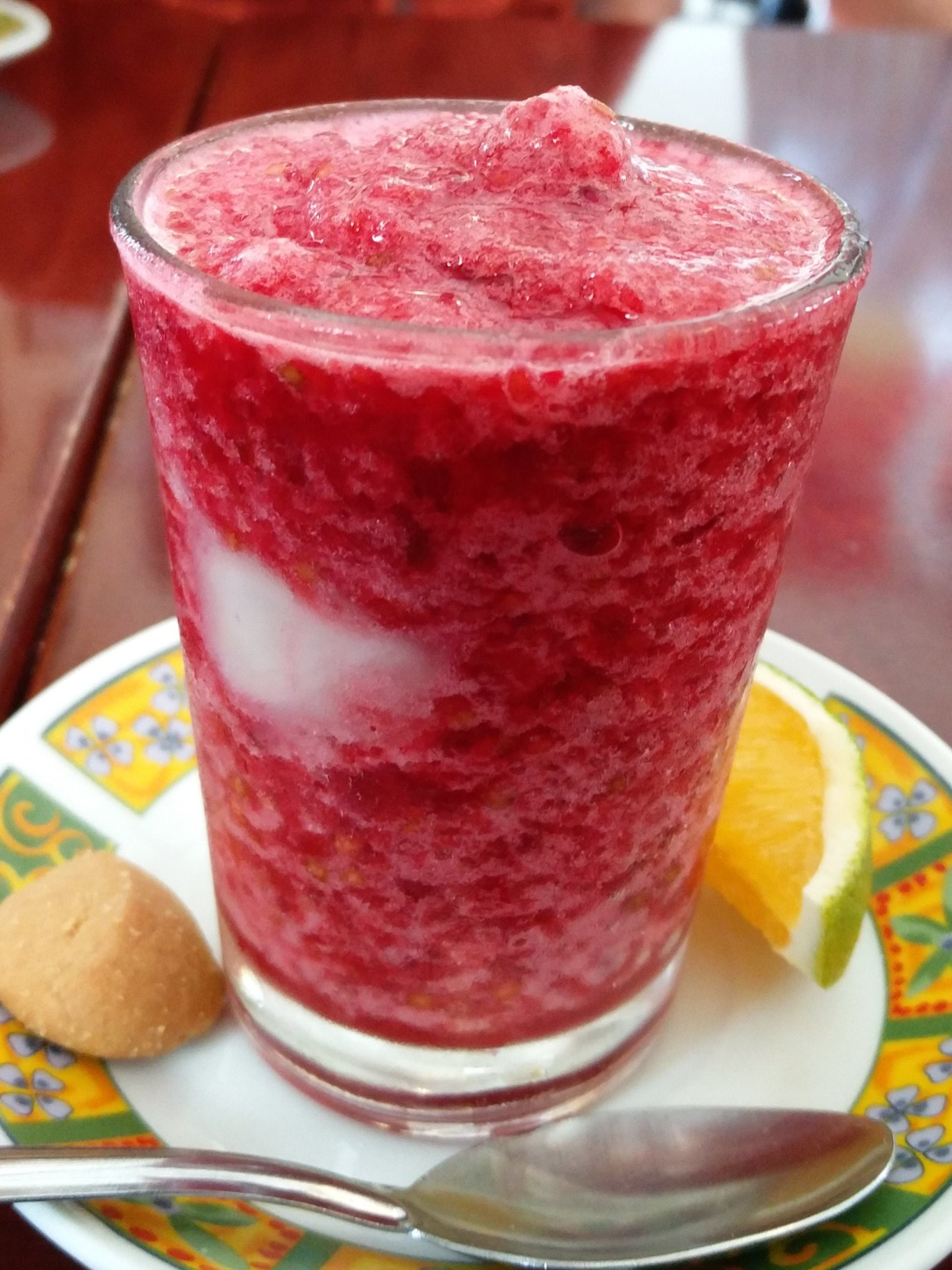 Bebida refrescante tradicional del Valle del Cauca elaborada a base de hielo y pulpa de lulo troceada.