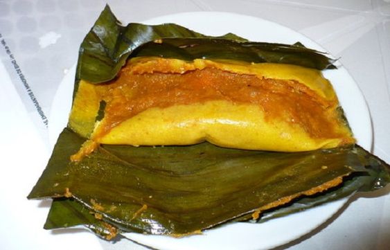 Típico pipián payanés, con pollo o tocino, cubierto en una fina capa de maíz añejo y cocido en hojas de plátano. Acompañado con ají de maní tradicional y porción de pan.
