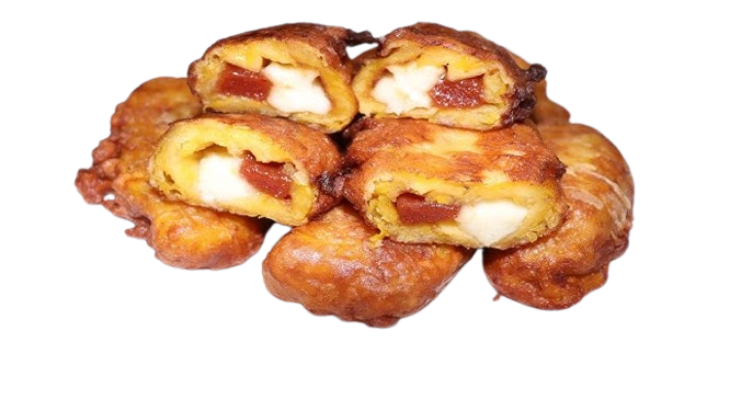 El placer de combinar el dulce sabor del plátano maduro rebosado con delicioso queso mozarella en su interior.